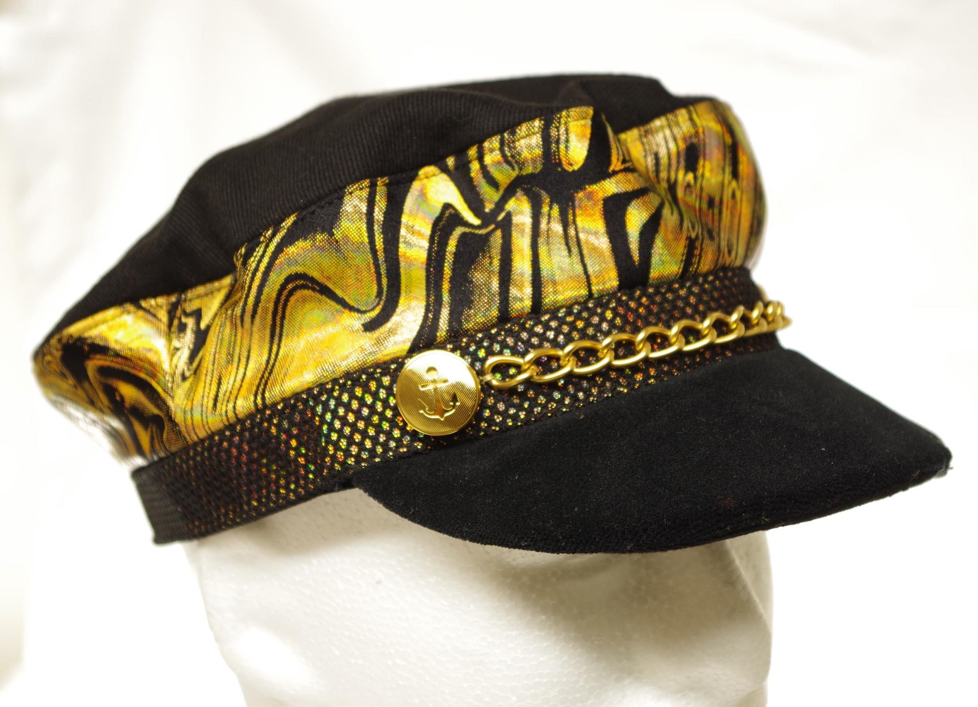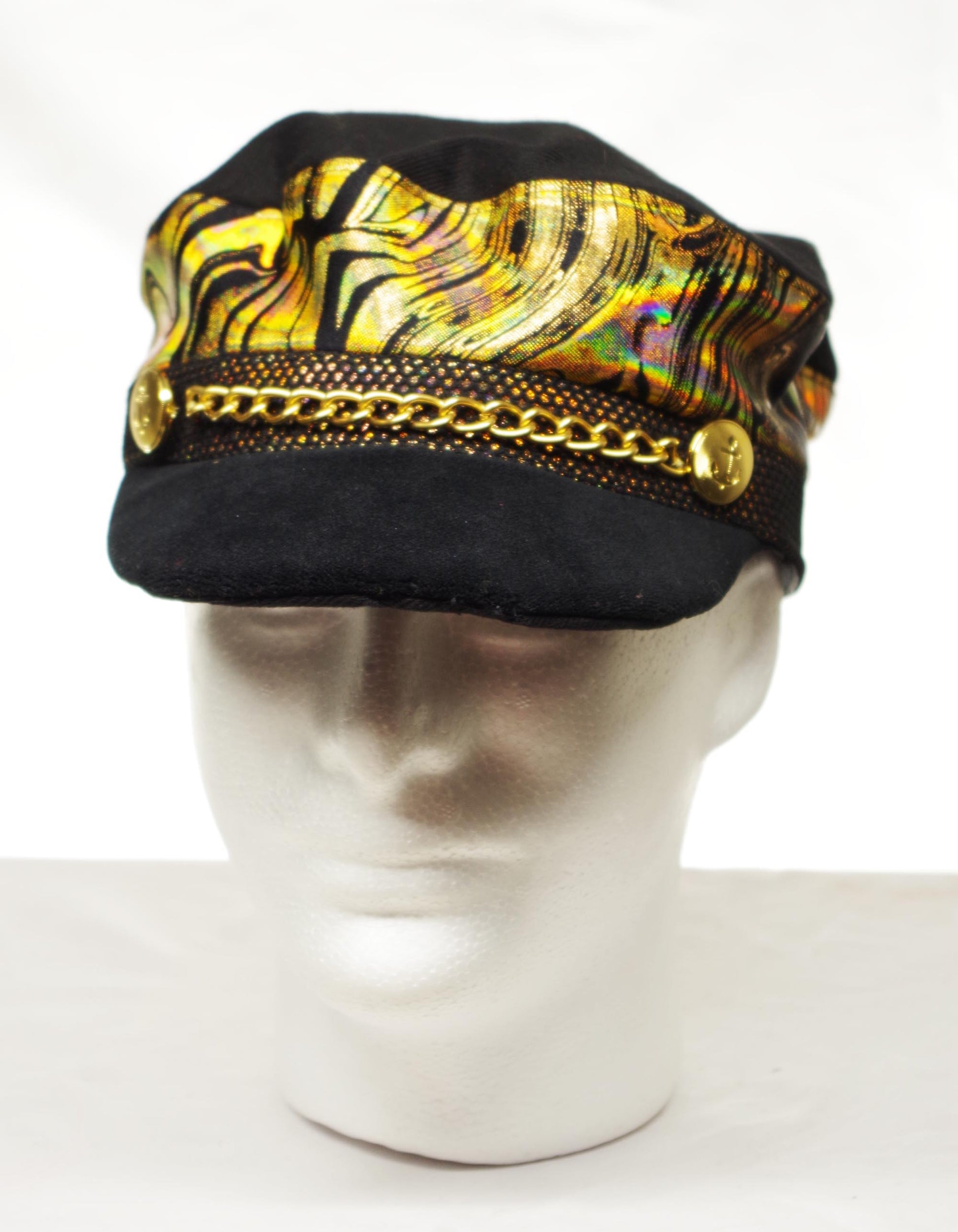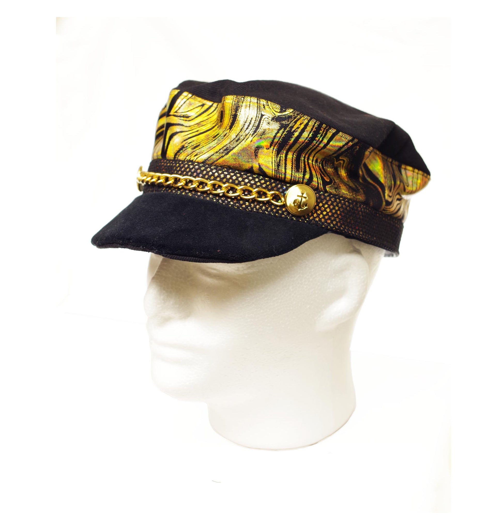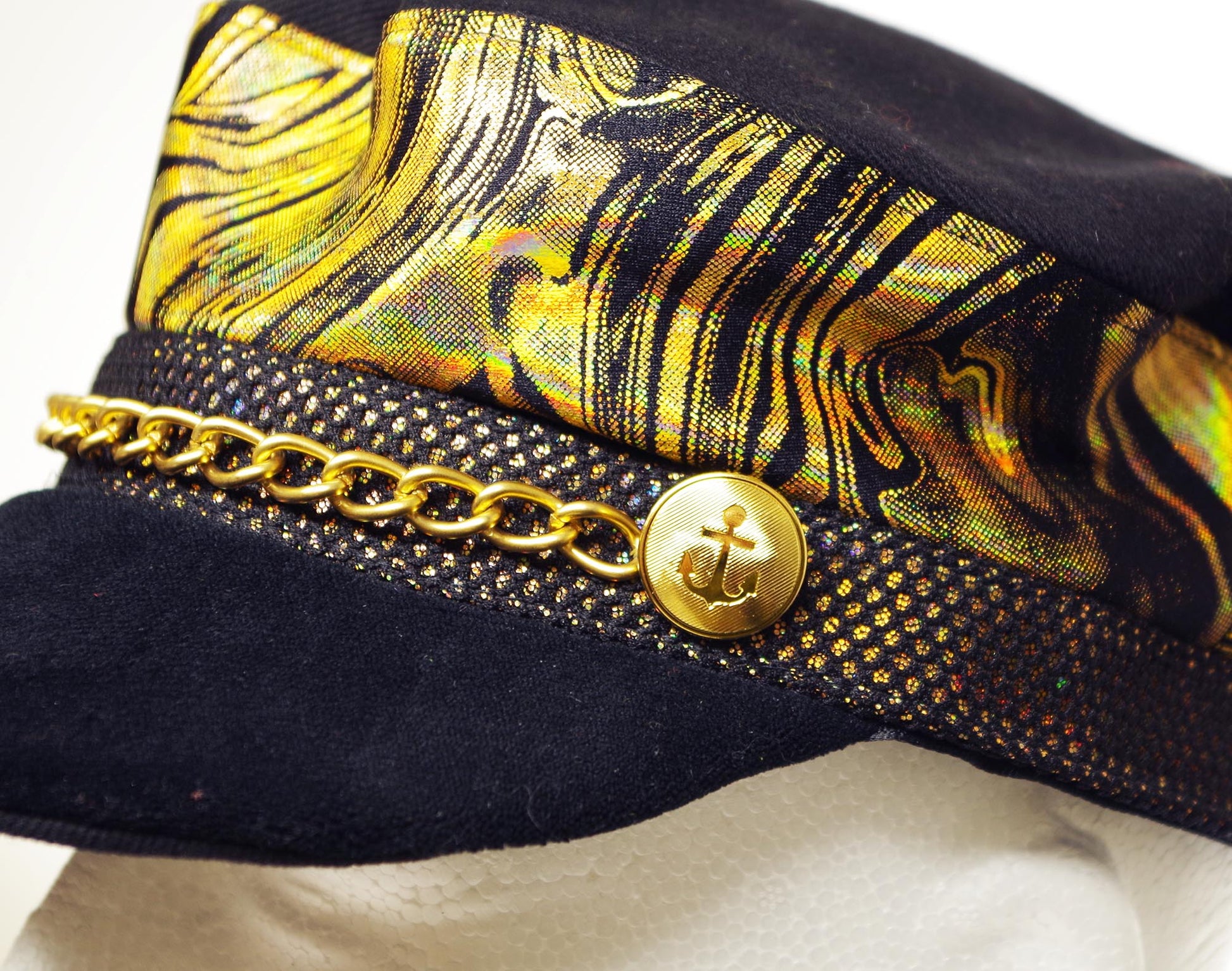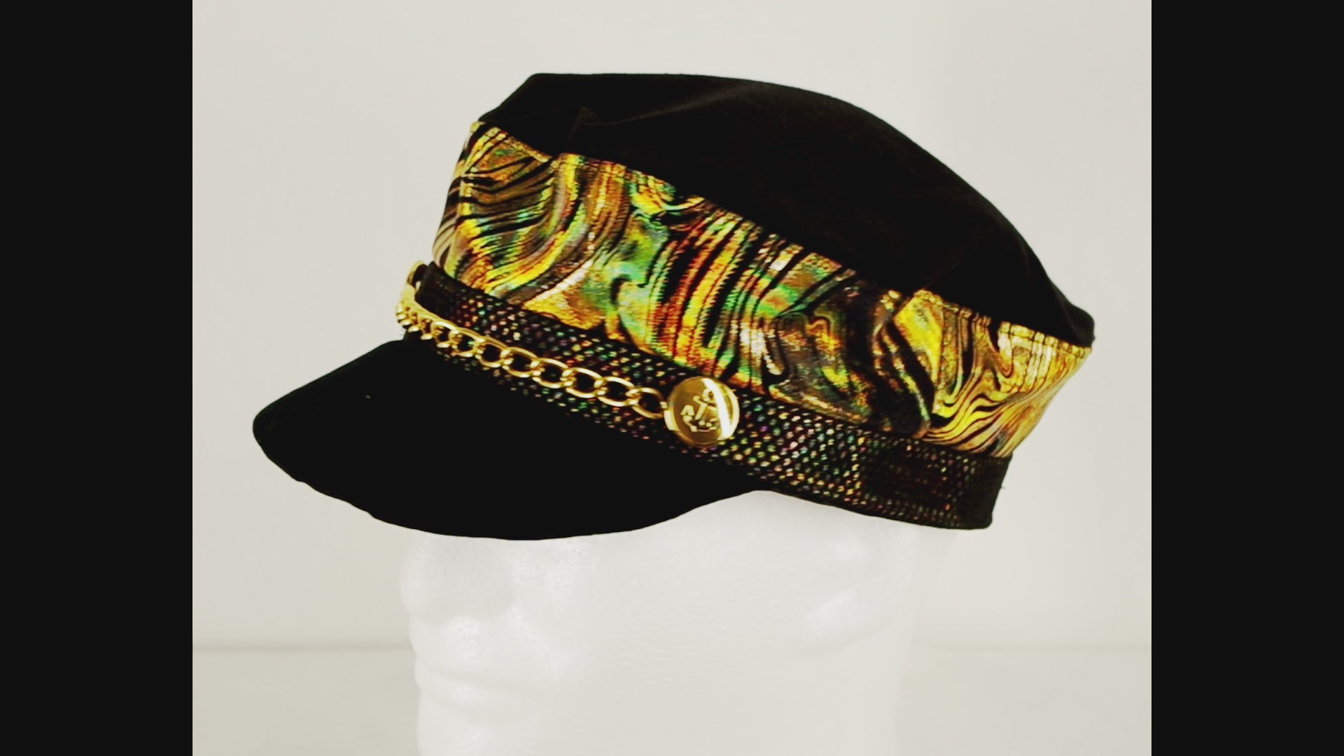 The hats are all lined with quality and curated lightweight linings, for comfort and a finished look. And the filigrees, chain, and buttons added to the front are often one-offs found in thrift and vintage shops.