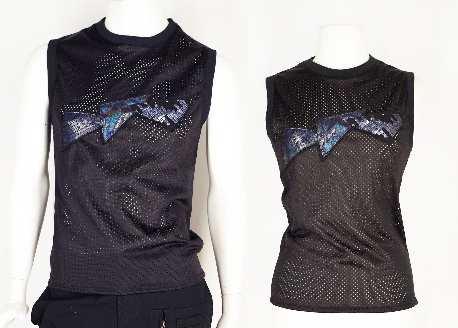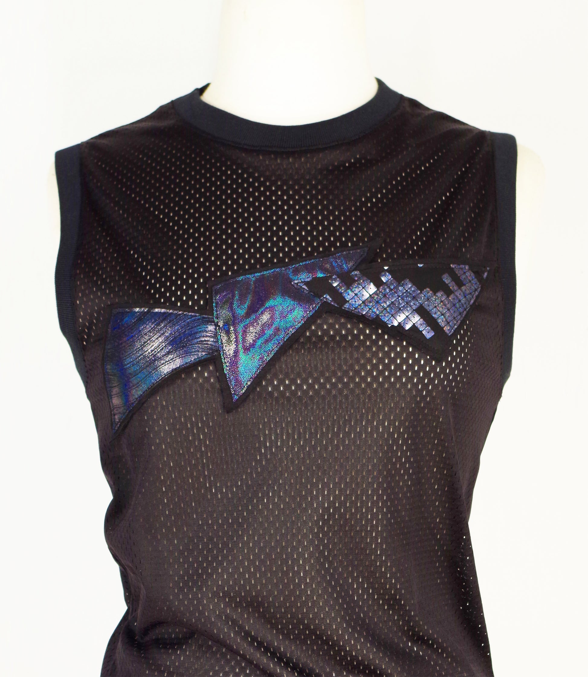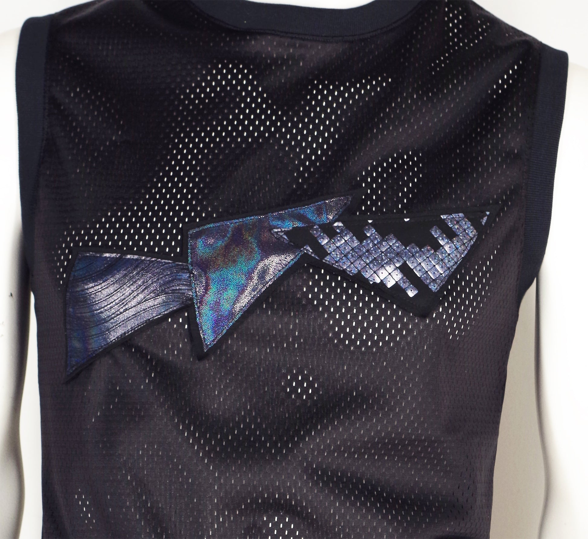 Festival Mesh Top with Holographic Triangles Black