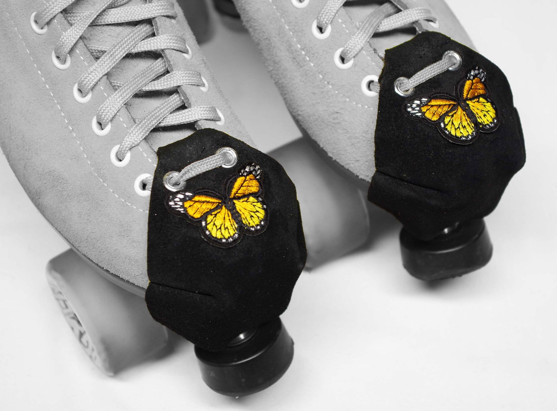 A toe guard made from sturdy suede that is skate-park worthy! Nice and strong and tough, but the shape is nice and sleek and streamlined. Elegant, almost?! Top it off with a pretty Butterfly embroidery. Super Sweet:)