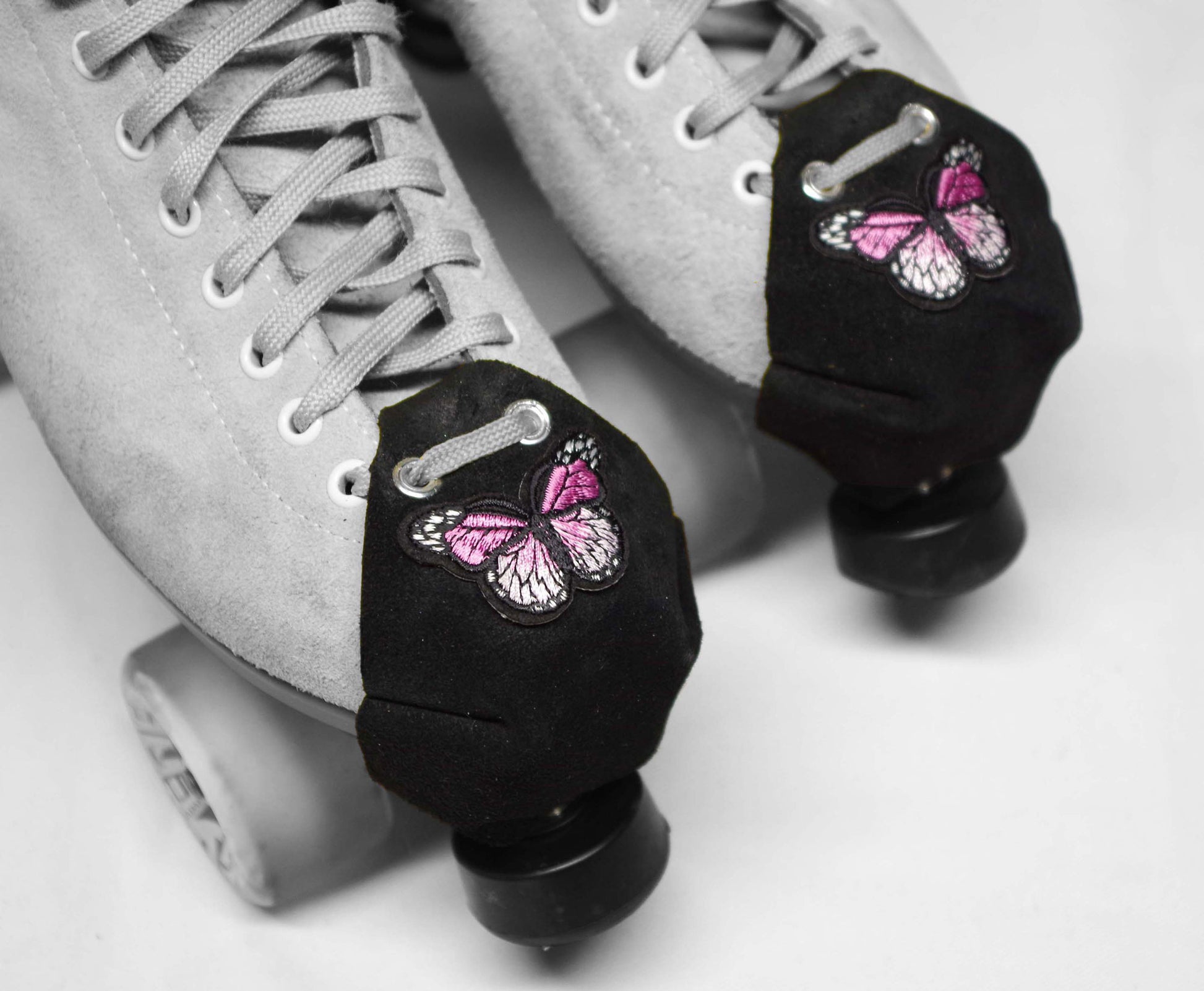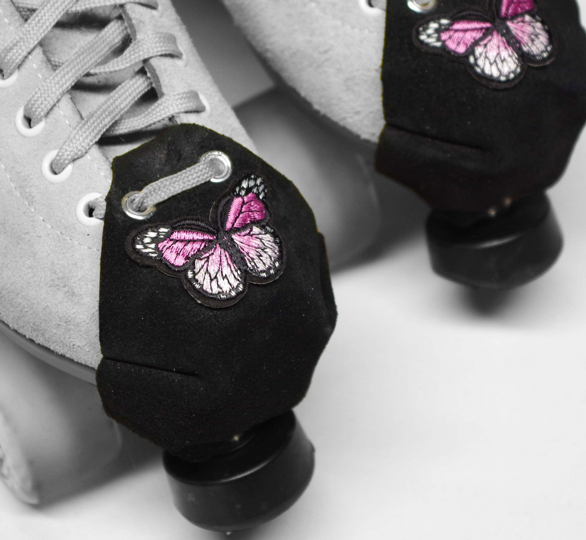 A toe guard made from sturdy suede that is skate-park worthy! Nice and strong and tough, but the shape is nice and sleek and streamlined. Elegant, almost?! Top it off with a pretty Butterfly embroidery. Super Sweet:)