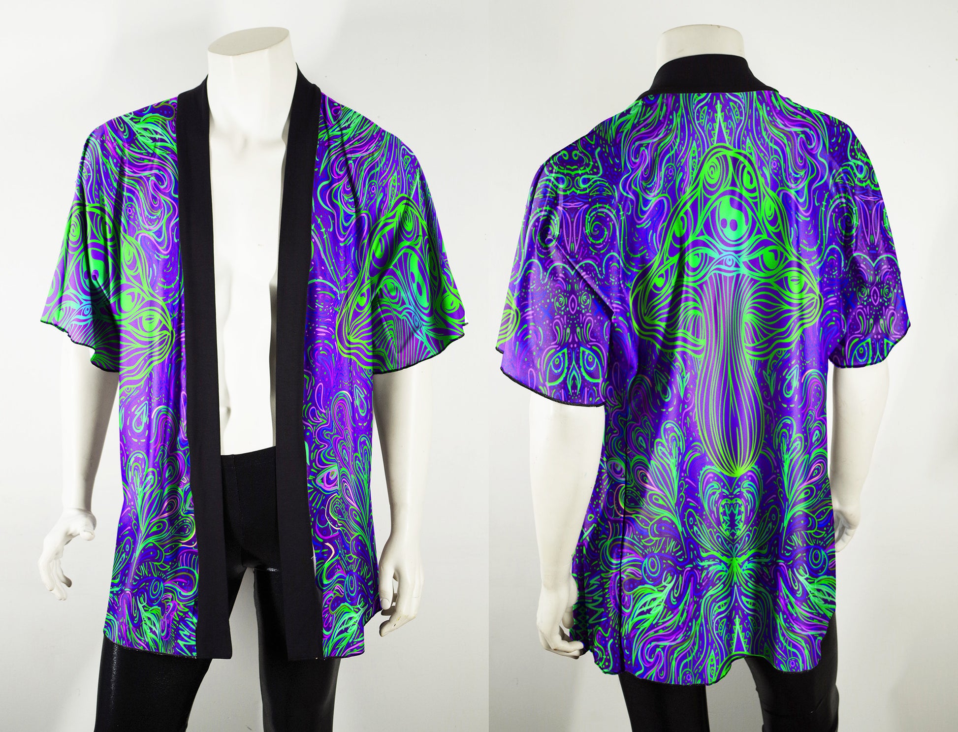 Festival Kimono-Style Draped Jacket Mushroom Print in Purple and Green