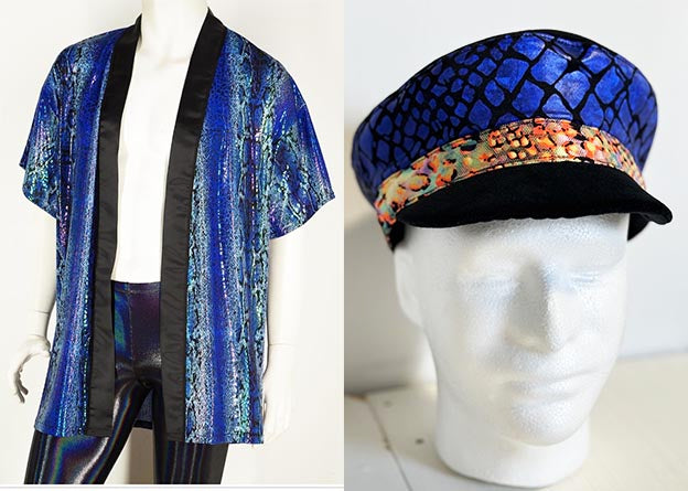Handmade Shiny Blue Kimono with Soft Captain's Hat for Festivals and Raves