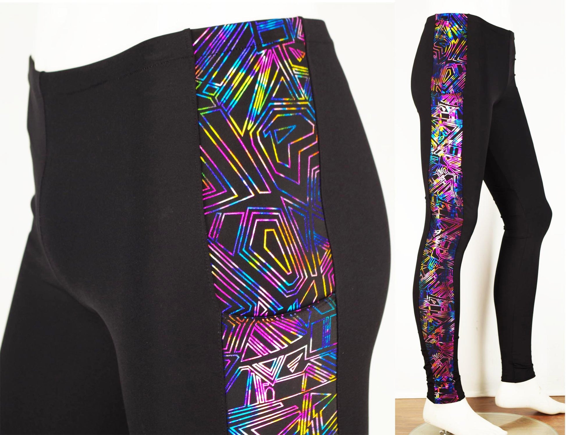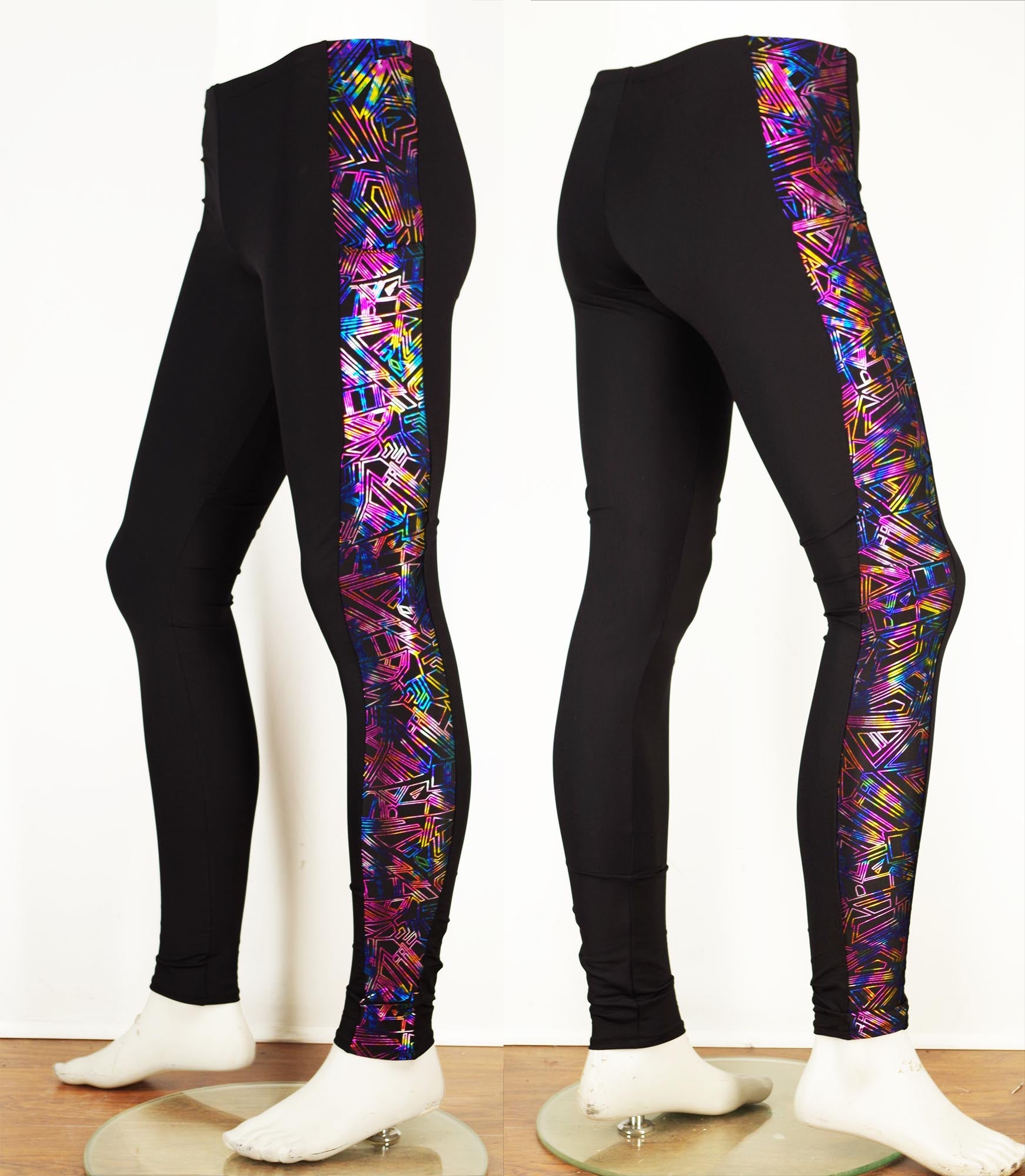 Meggings or Mens Running Tights with Geometric Metallic Strip and Phone Pocket