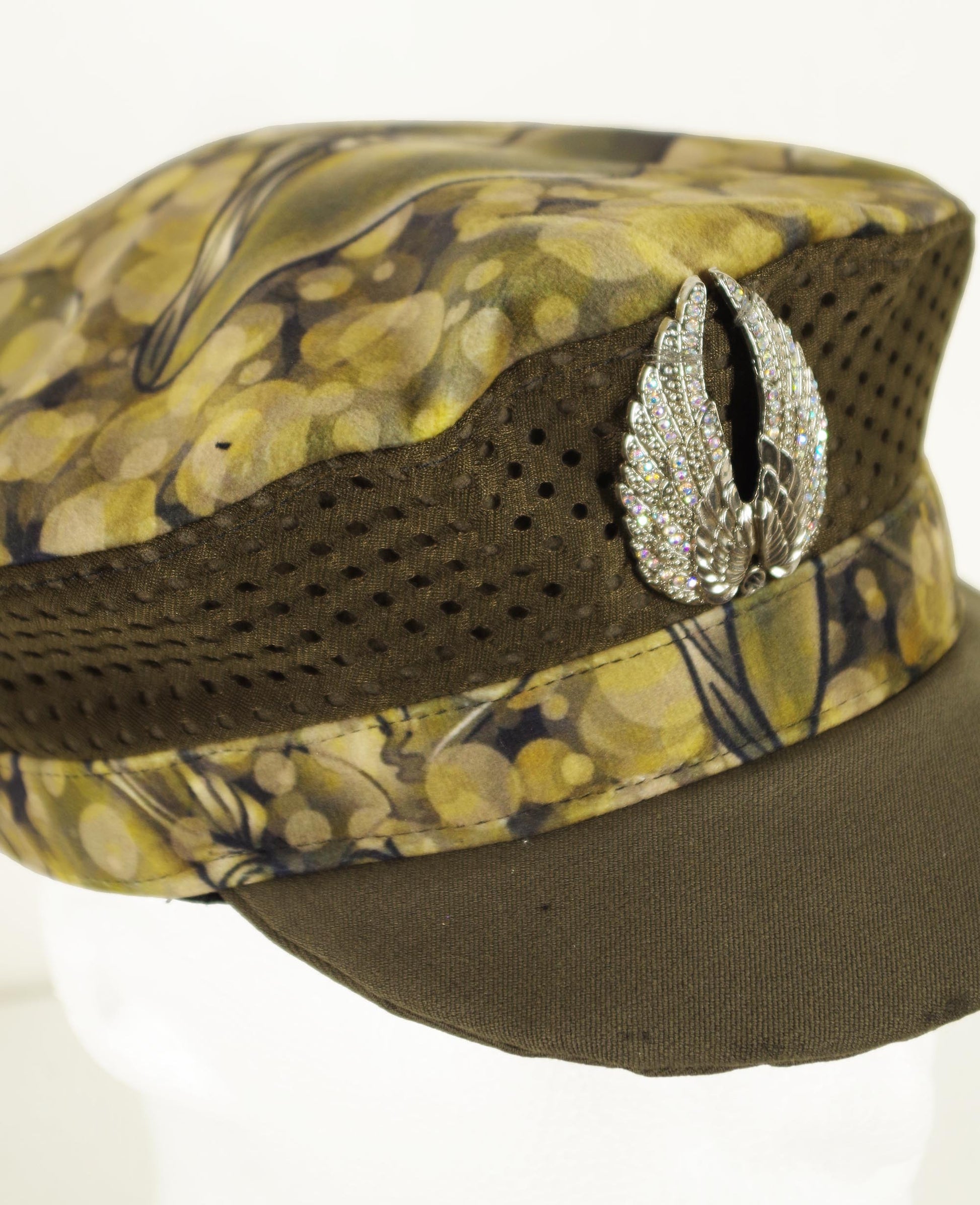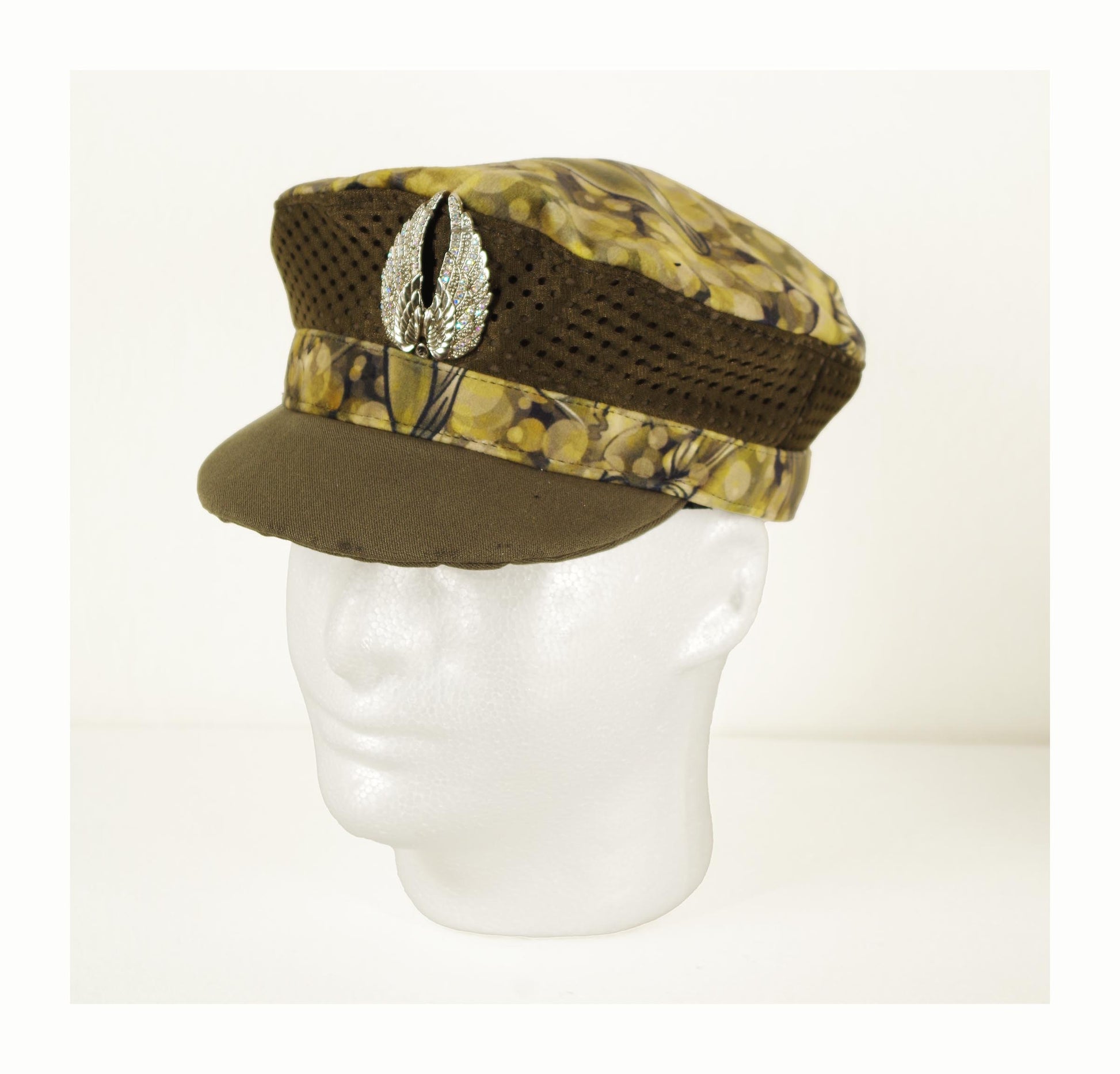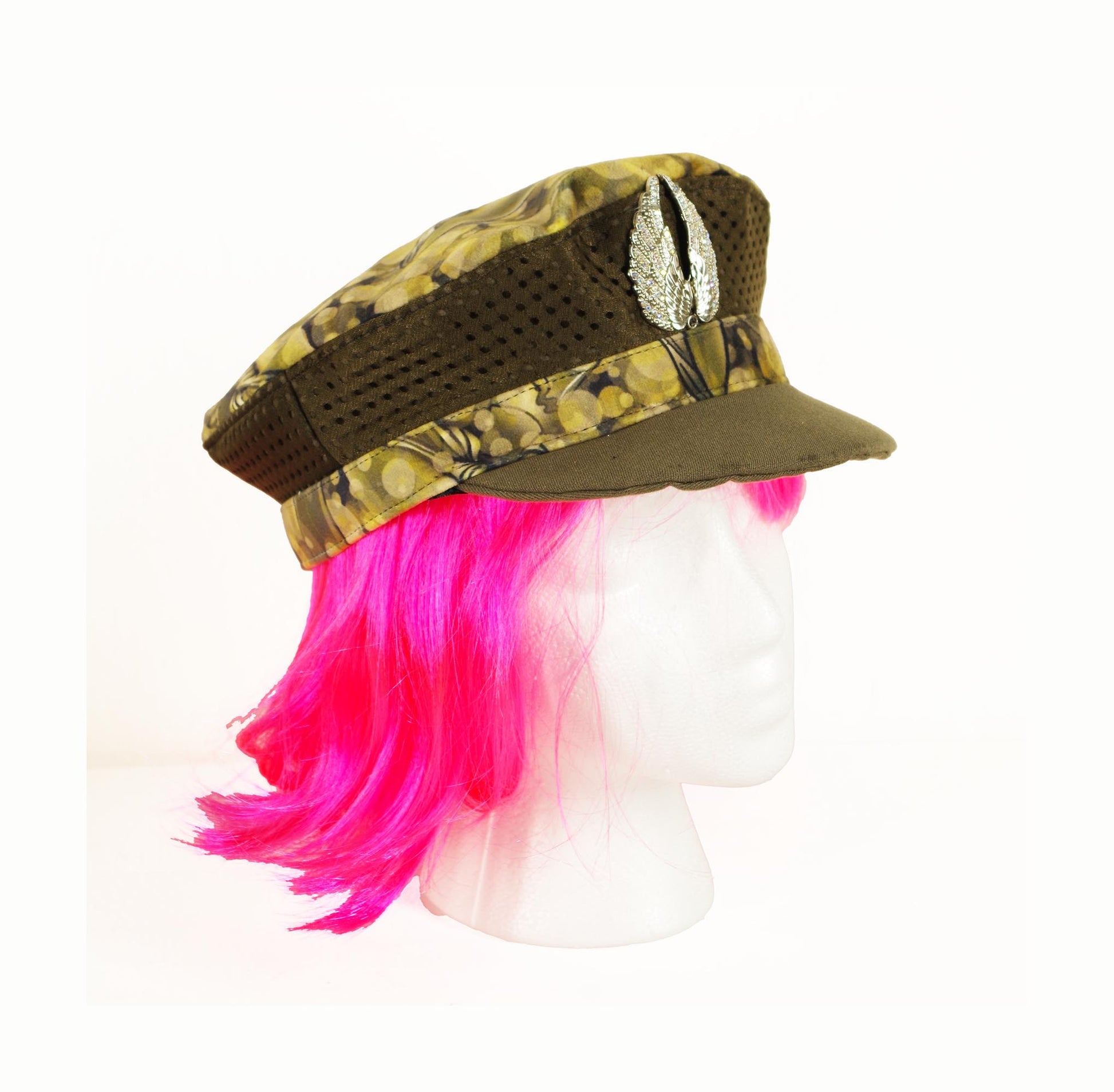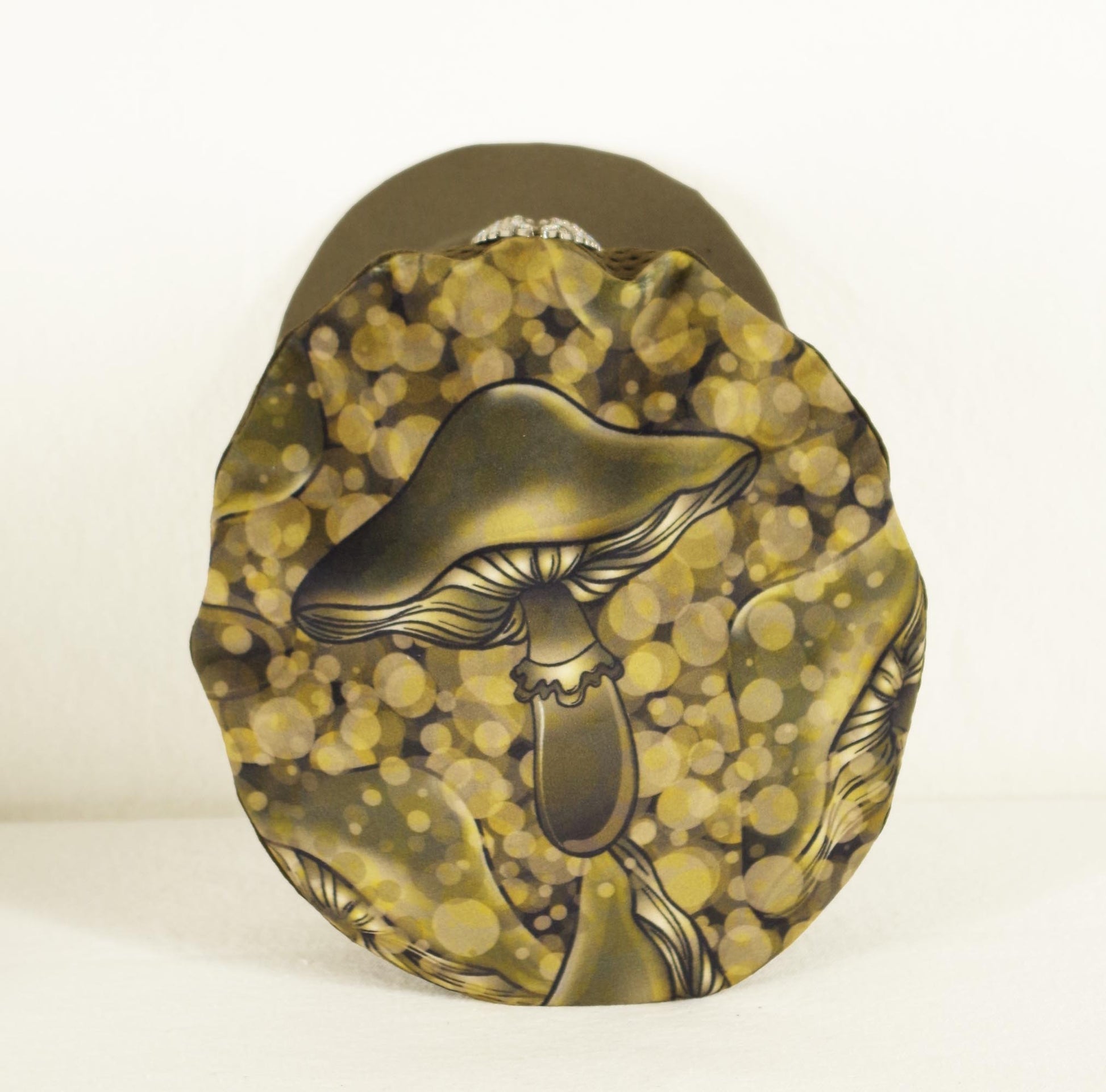 The hats are all lined with quality and curated lightweight linings, for comfort and a finished look. And the filigrees, chain, and buttons added to the front are often one-offs found in thrift and vintage shops.