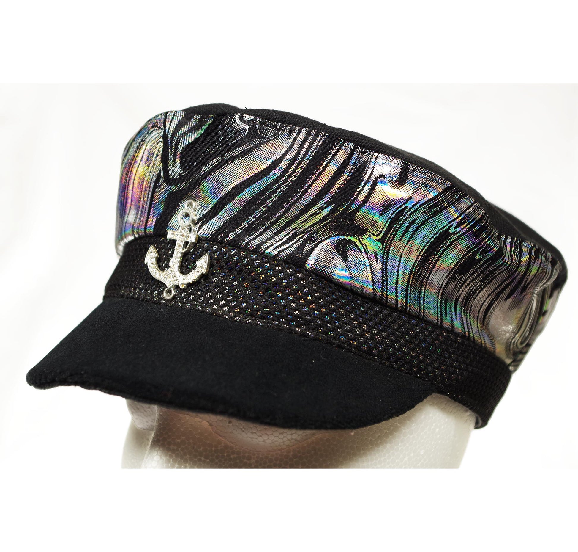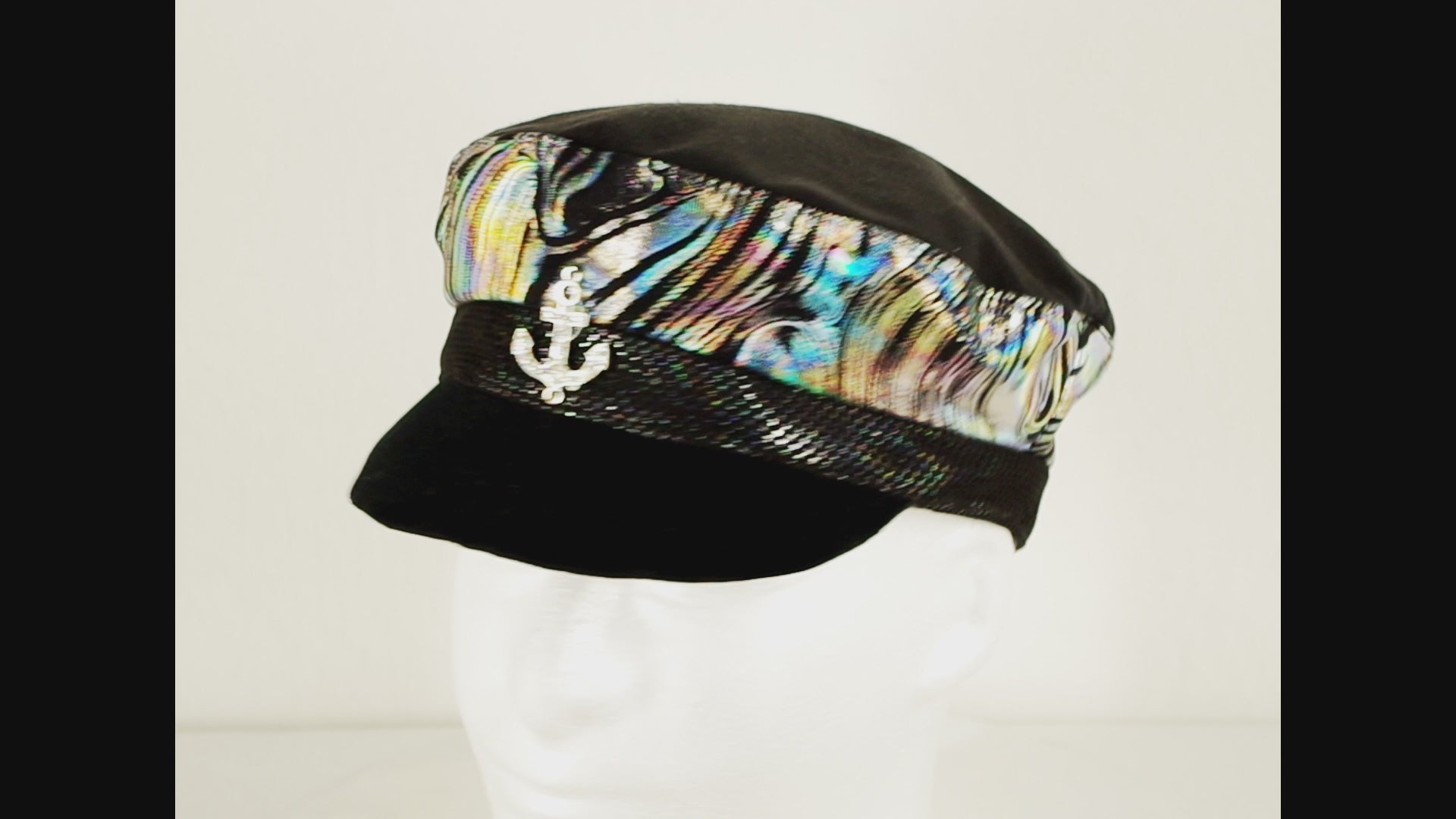 The hats are all lined with quality and curated lightweight linings, for comfort and a finished look. And the filigrees, chain, and buttons added to the front are often one-offs found in thrift and vintage shops.