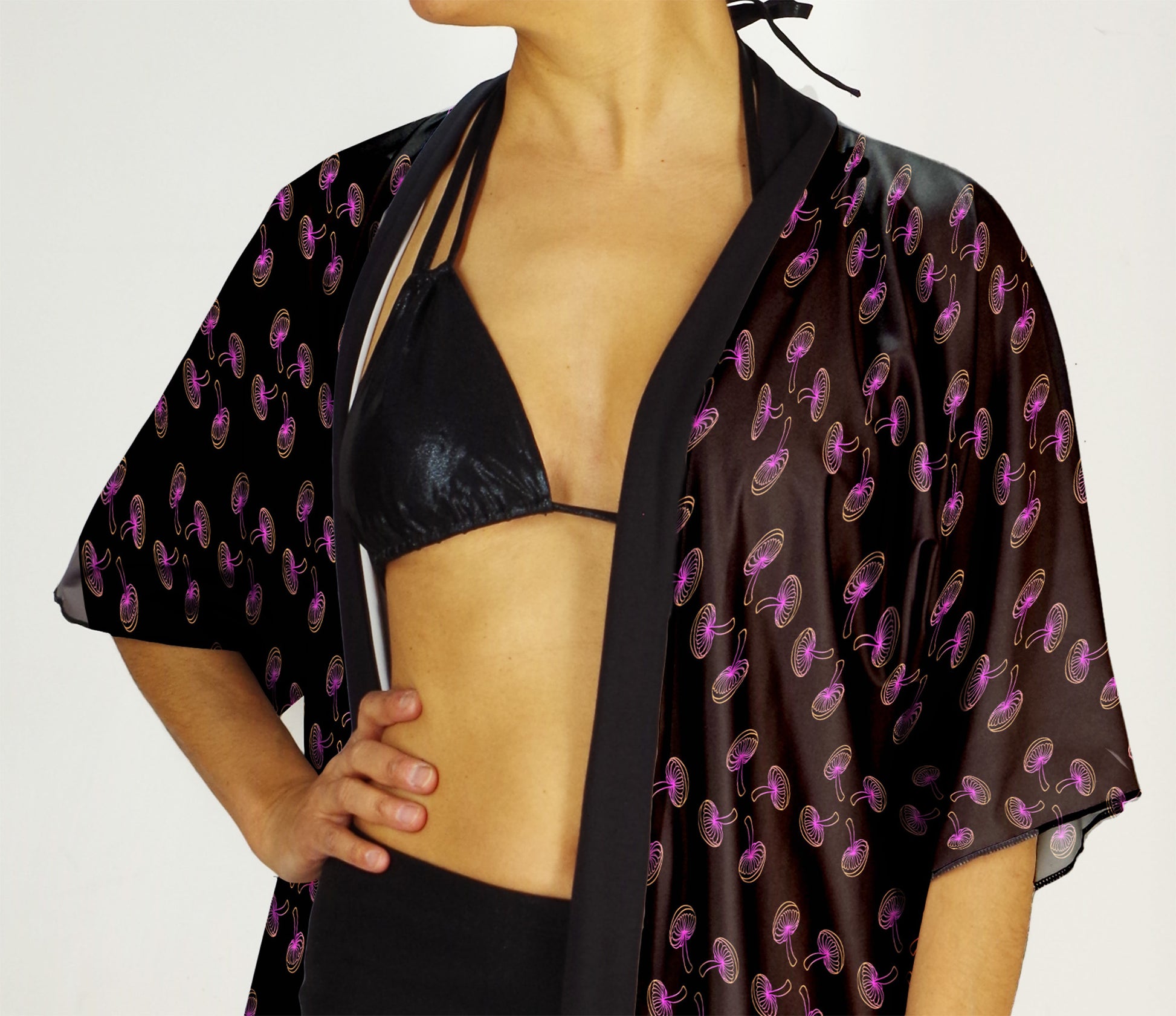 These festival robes are so great for summer vibes. Best worn open, layered over other costume pieces. An accessory to your outfit, and a coverup from the sun, or a light jacket in the evening. But you can wear it belted as loungewear as well of course! Super versatile! And made from super soft peachskin jersey, durable and fully machine washable!