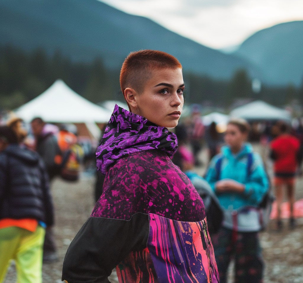 A 90s influenced jacket with gorgeously rich textures and colours, with a dragon print hood. The style is wide and short, lends itself to a hip hop look. Order a couple of sizes up to accentuate the street style look of the 80s and 90s. And pair it with some hoop earrings and a baseball cap!
